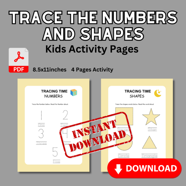 Trace the Numbers and Shapes – Kids Activity Pages
